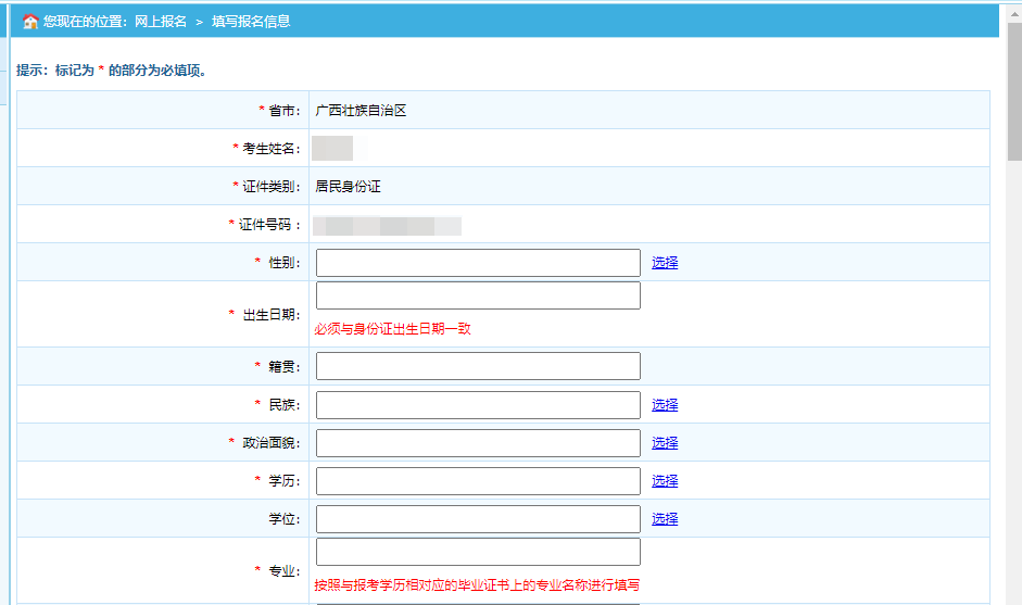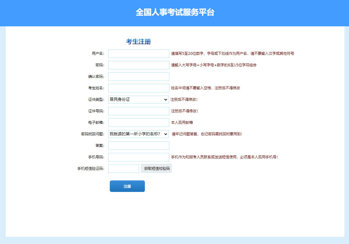 第二步:點(diǎn)擊“注冊(cè)”,進(jìn)入考生注冊(cè)頁(yè)面,考生注冊(cè)填寫(xiě)個(gè)人信息