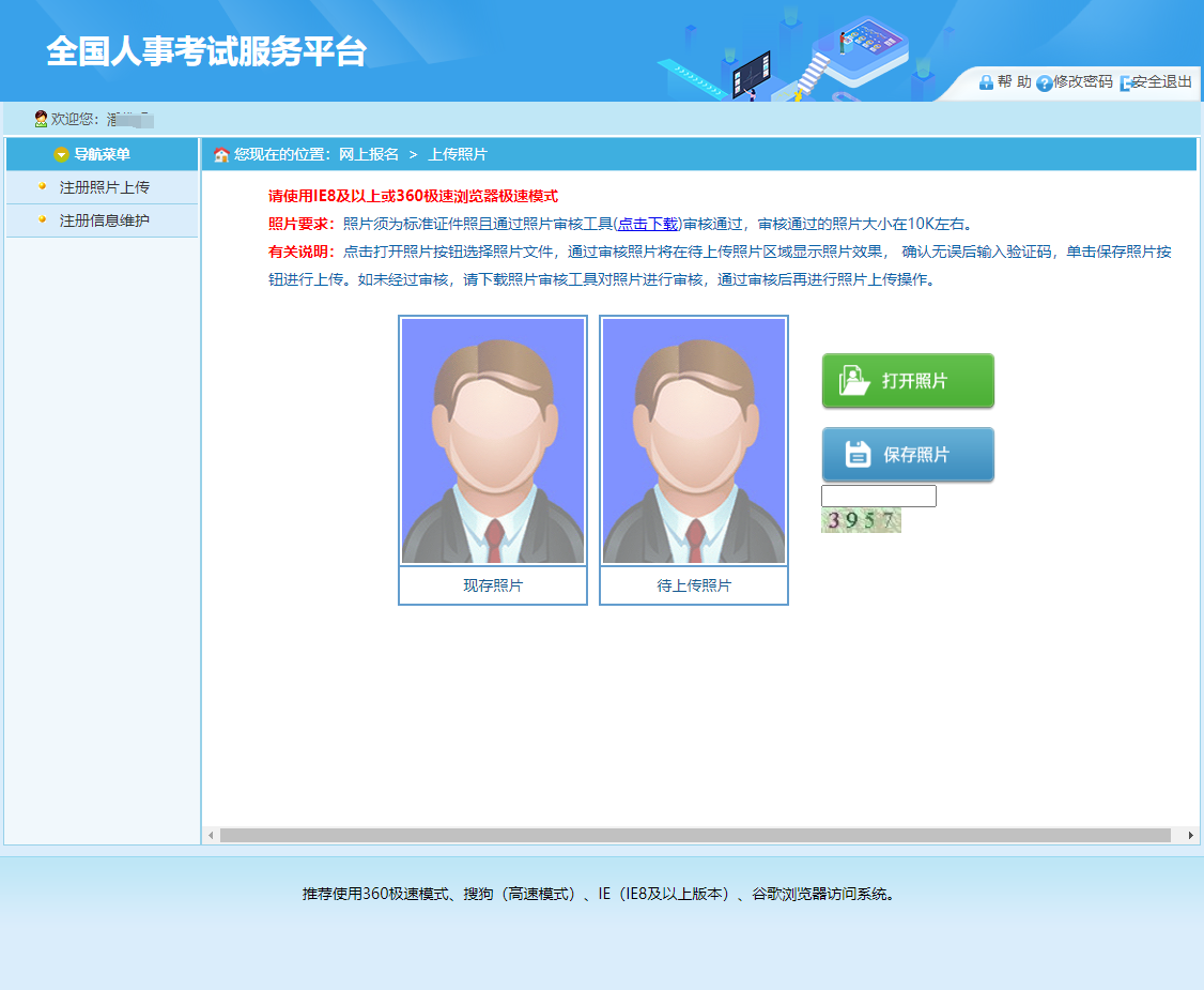 第四步:上傳報(bào)名照片(注:需要用電腦端下載照片處理工具,對(duì)照片進(jìn)行審核,準(zhǔn)備好一張紅藍(lán)白底證件照,進(jìn)入照片審核處理工具進(jìn)行處理,完成之后用處理好的照片在此頁(yè)面上傳)