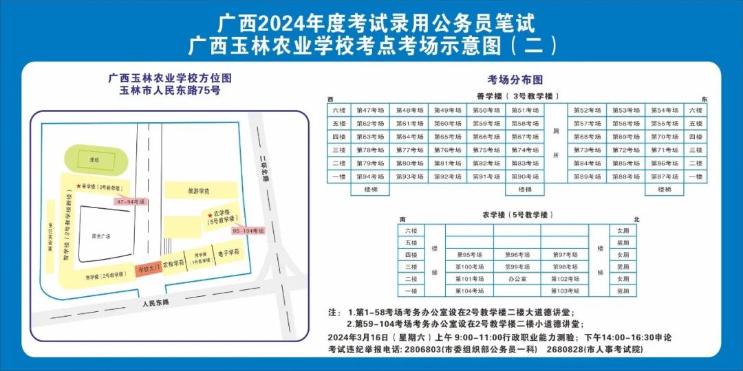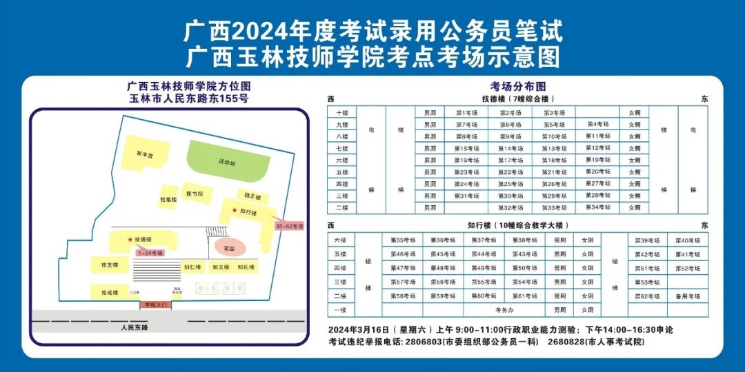 2024年選擇在玉林考區(qū)參加考試的考生人數(shù)較多,屆時(shí)考點(diǎn)區(qū)域內(nèi)的食宿、交通較為緊張。請(qǐng)?zhí)崆傲私獗救怂诳键c(diǎn)具體位置,熟悉考點(diǎn)周邊情況,根據(jù)考點(diǎn)的情況合理做好食宿安排和出行計(jì)劃。需要特別注意的是:玉林市第一職業(yè)中等專業(yè)學(xué)??键c(diǎn)是設(shè)在該校的東校區(qū)(人民東路東235號(hào));玉林市第一中學(xué)考點(diǎn)是設(shè)在該校的運(yùn)嶺路校區(qū)(二環(huán)北路1228號(hào))!