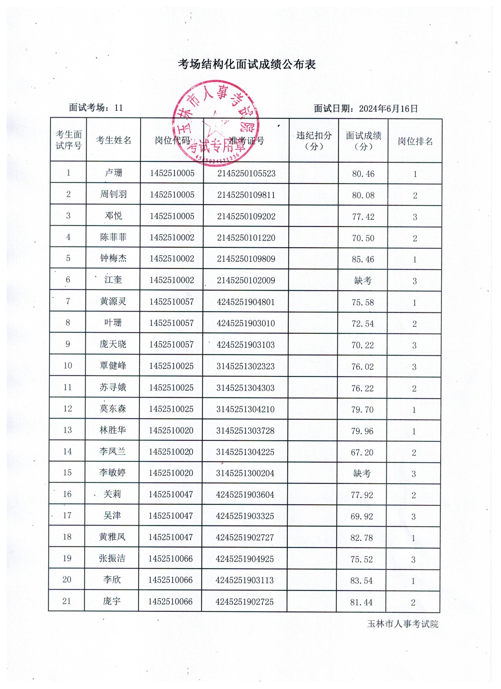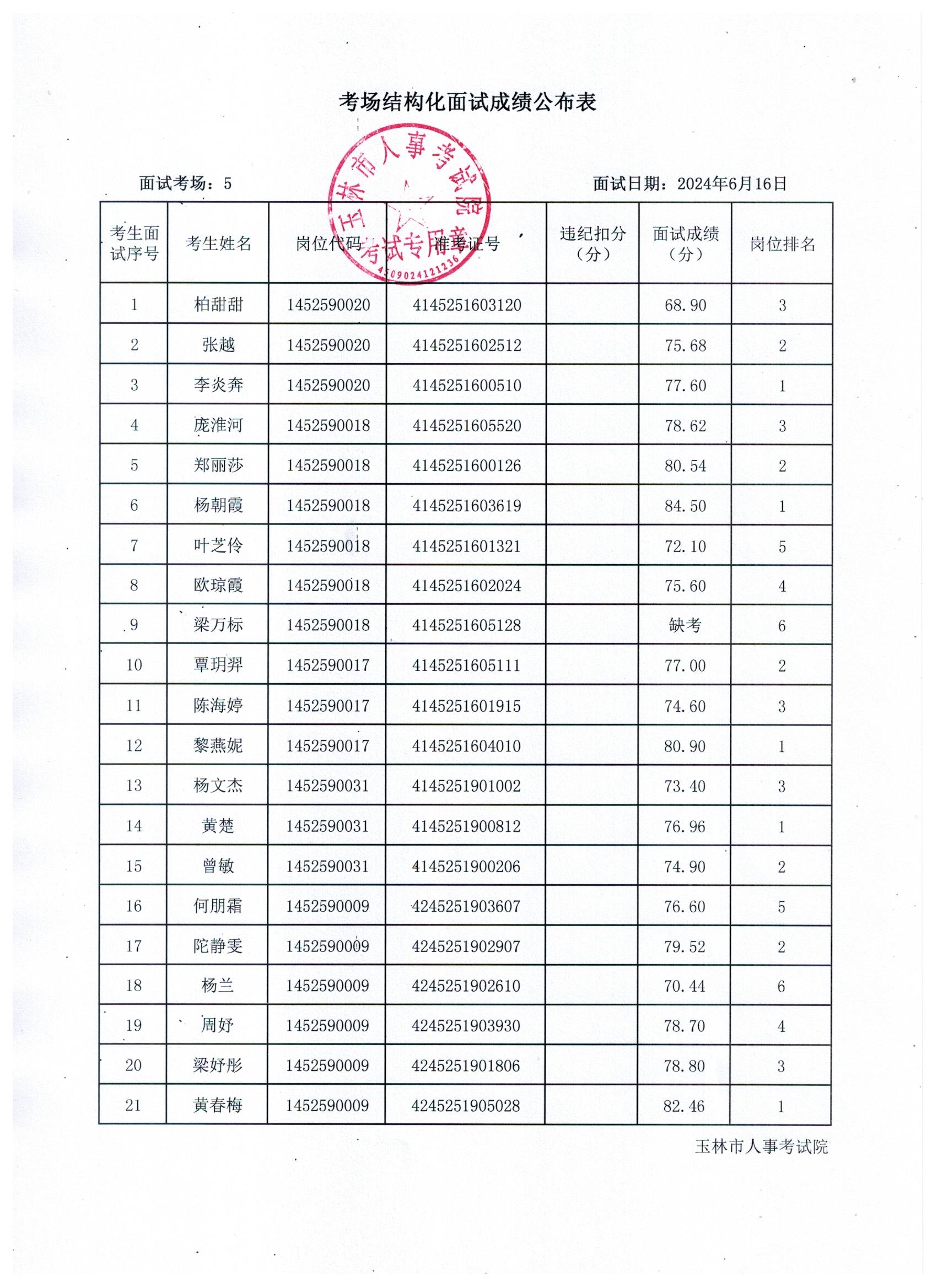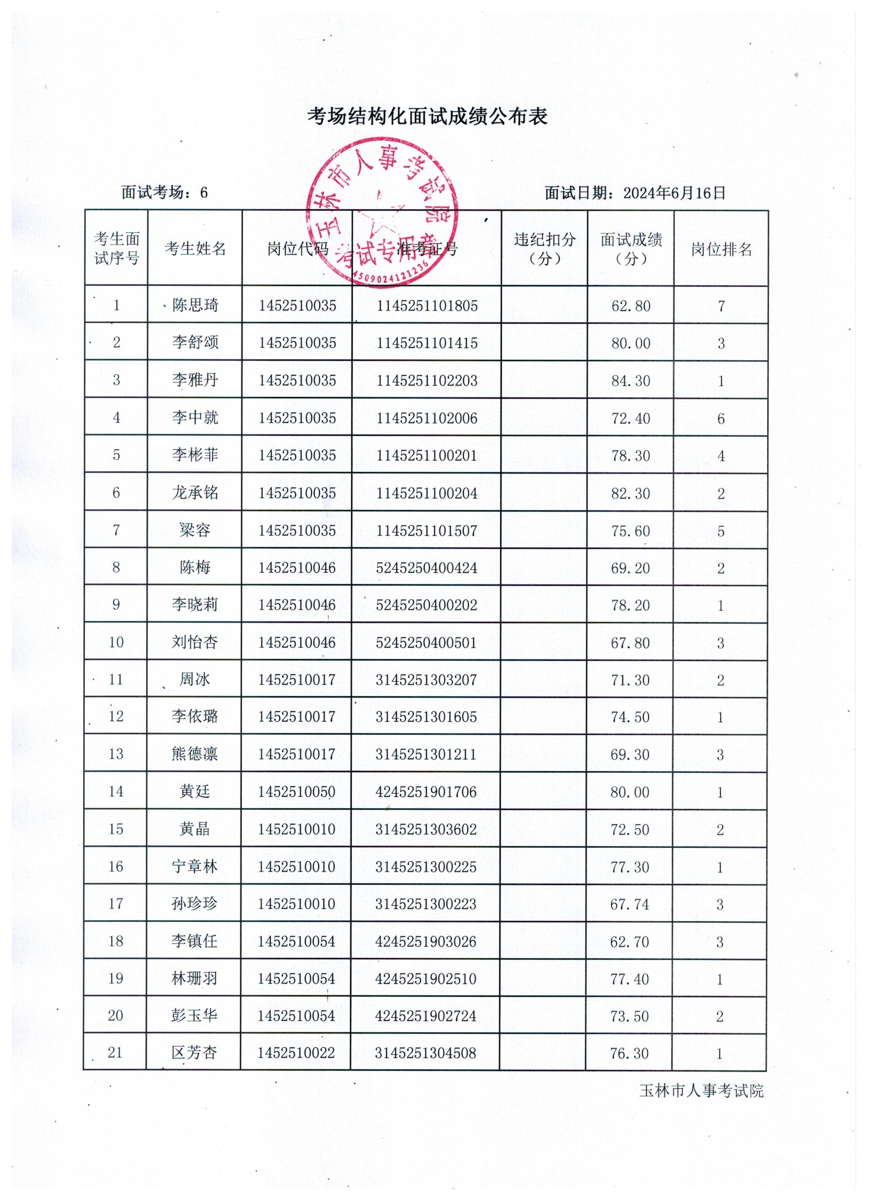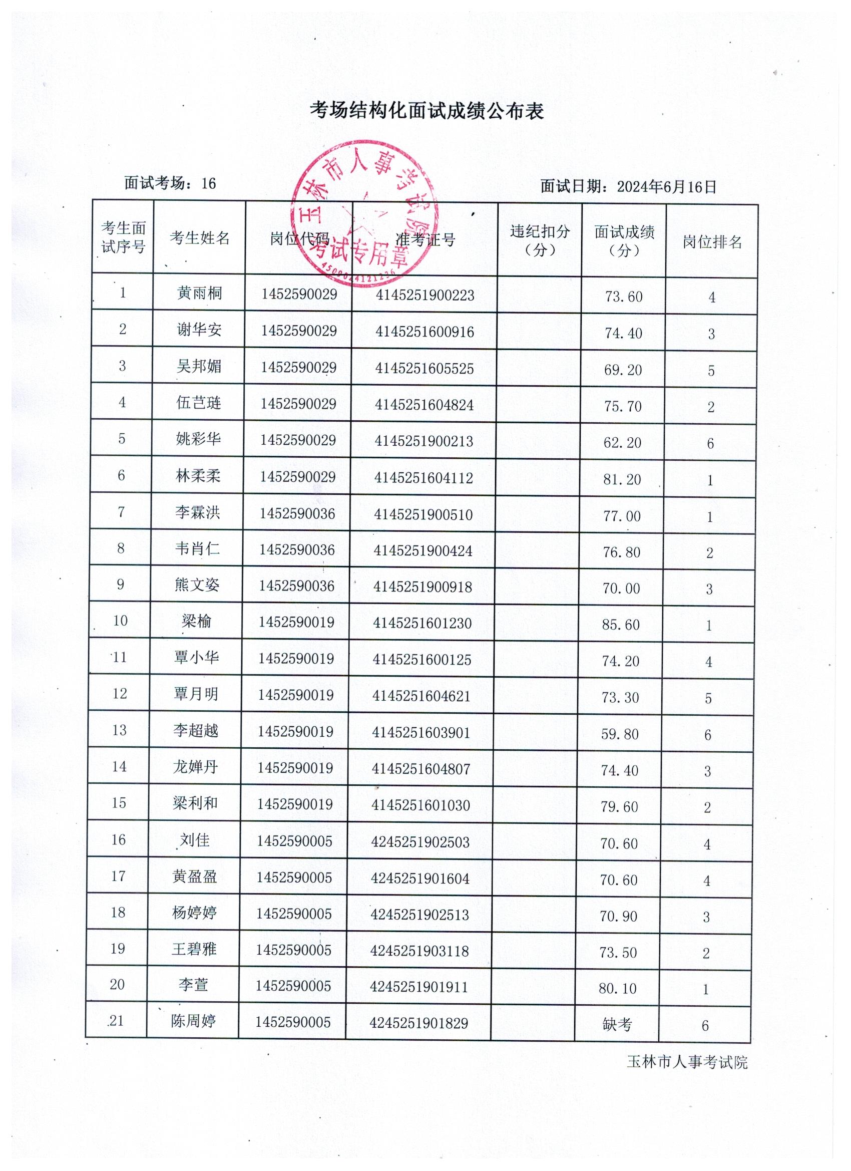 原文標(biāo)題:2024年玉林市直(含玉州區(qū)、福綿區(qū)、玉東新區(qū))事業(yè)單位公開招聘人員面試成績公布(6月16日)
