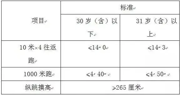 參照《關(guān)于印發(fā)公安機關(guān)錄用人民警察體能測評項目和標準(暫行)的通知》(人社部發(fā)〔2011〕48號)的項目及測試規(guī)則,結(jié)合《公安民警體育鍛煉達標手冊》成績標準,本次體能測評的項目和標準如下: