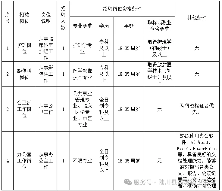 2、報名地點:陸川縣古城鎮(zhèn)衛(wèi)生院綜合大樓六樓行政辦公室。