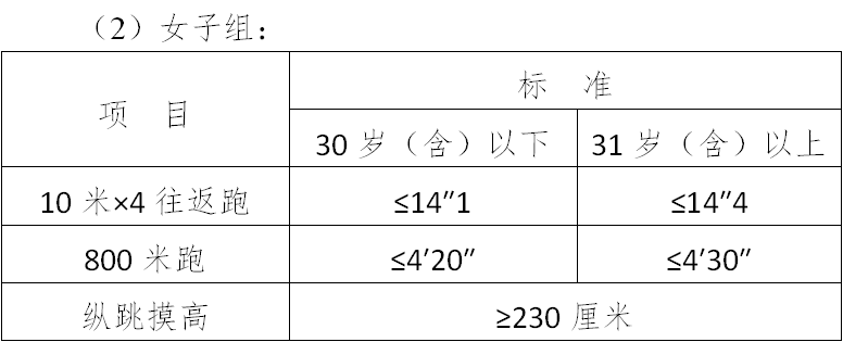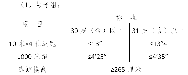(三)面試體能測試三項全部達標(biāo)的,視為合格