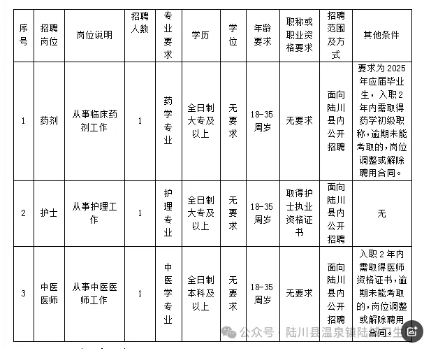 原文標題:陸川縣溫泉鎮(zhèn)陸城衛(wèi)生院公開招聘編外醫(yī)務人員公告