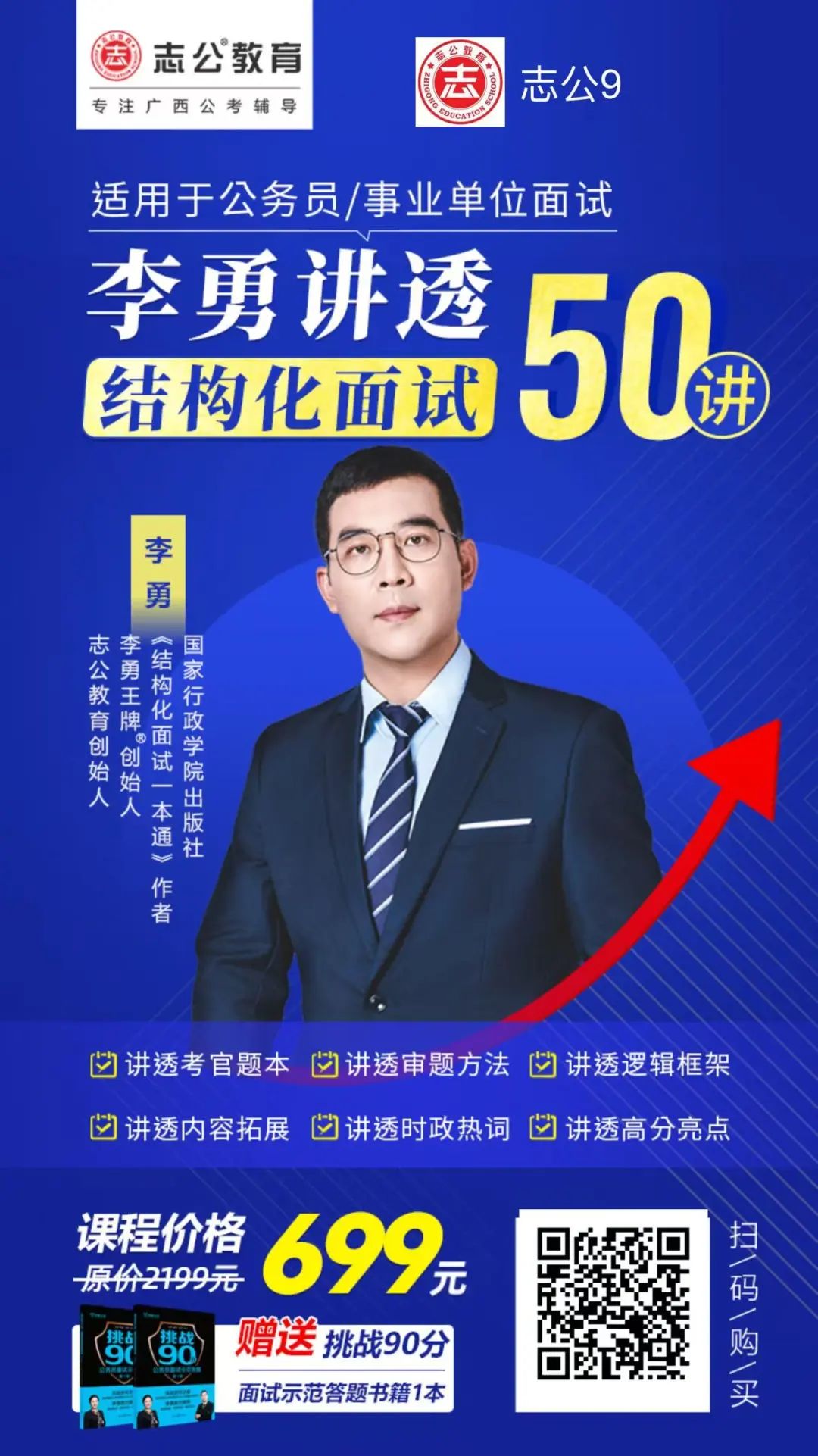 李勇——志公教育創(chuàng)始人、李勇王牌®班創(chuàng)始人,志公教育名師。主講結(jié)構(gòu)化面試、結(jié)構(gòu)化小組面試,專注廣西公考輔導(dǎo)17年。獨(dú)創(chuàng)“萬變積木教學(xué)法”,擅長在教學(xué)中運(yùn)用金字塔原理和行動(dòng)學(xué)習(xí),課堂生動(dòng)有趣,形成獨(dú)特的授課體系。激發(fā)學(xué)員學(xué)習(xí)興趣的同時(shí)開發(fā)學(xué)員的潛能,讓學(xué)習(xí)事半功倍,幫助無數(shù)學(xué)子達(dá)成目標(biāo)。同時(shí)也是人民日報(bào)出版社《挑戰(zhàn)90分第三輯》作者。