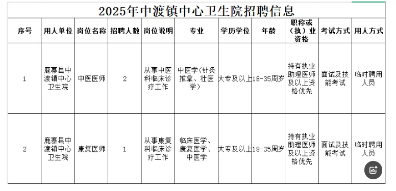 原文標題:鹿寨縣中渡鎮(zhèn)中心衛(wèi)生院2025年招聘公告