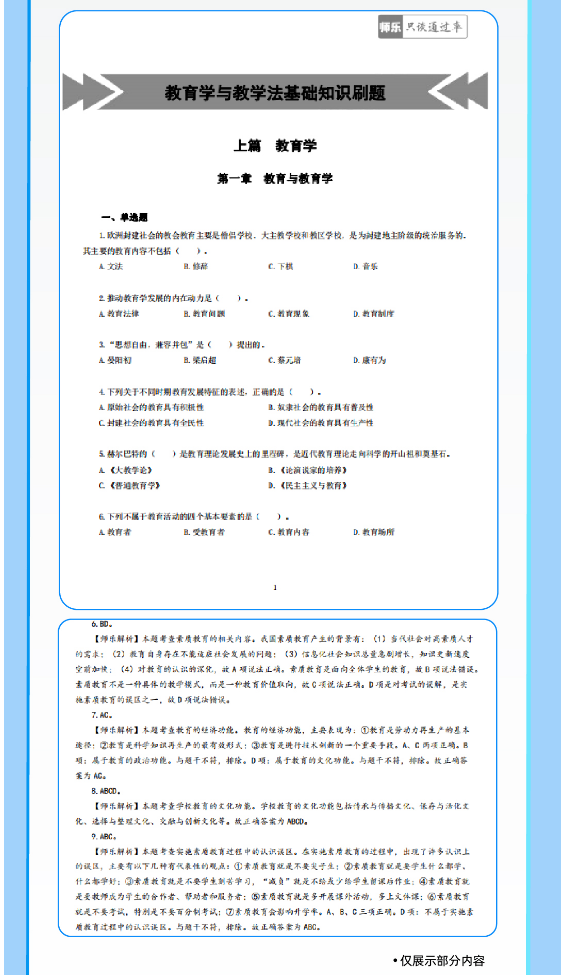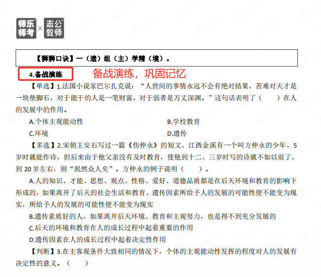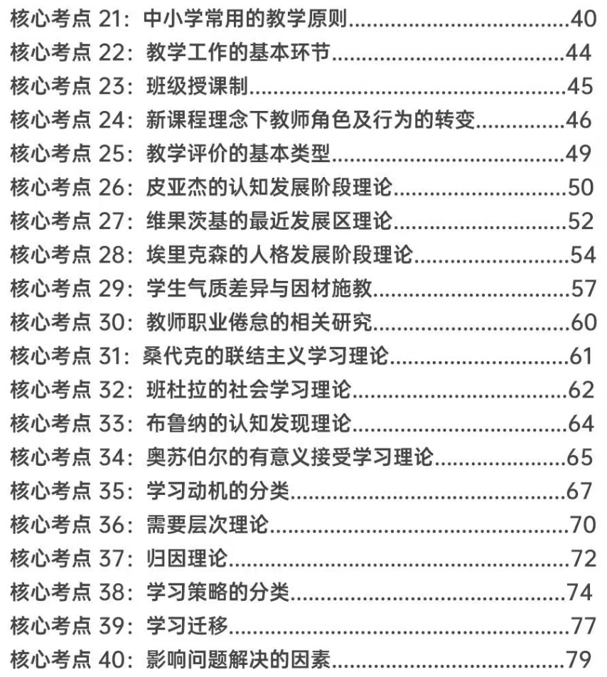 匹配考綱要求,精選50個核心考點:銘師組團精研,基于考綱收錄《教育學(xué)與教學(xué)法基礎(chǔ)知識》《教育心理學(xué)與德育工作基礎(chǔ)知識》核心考點,重點突出,幫助考生學(xué)習記憶。