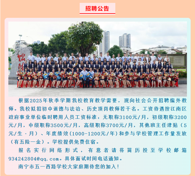 2025年廣西南寧市五一西路學(xué)校招聘老師若干名