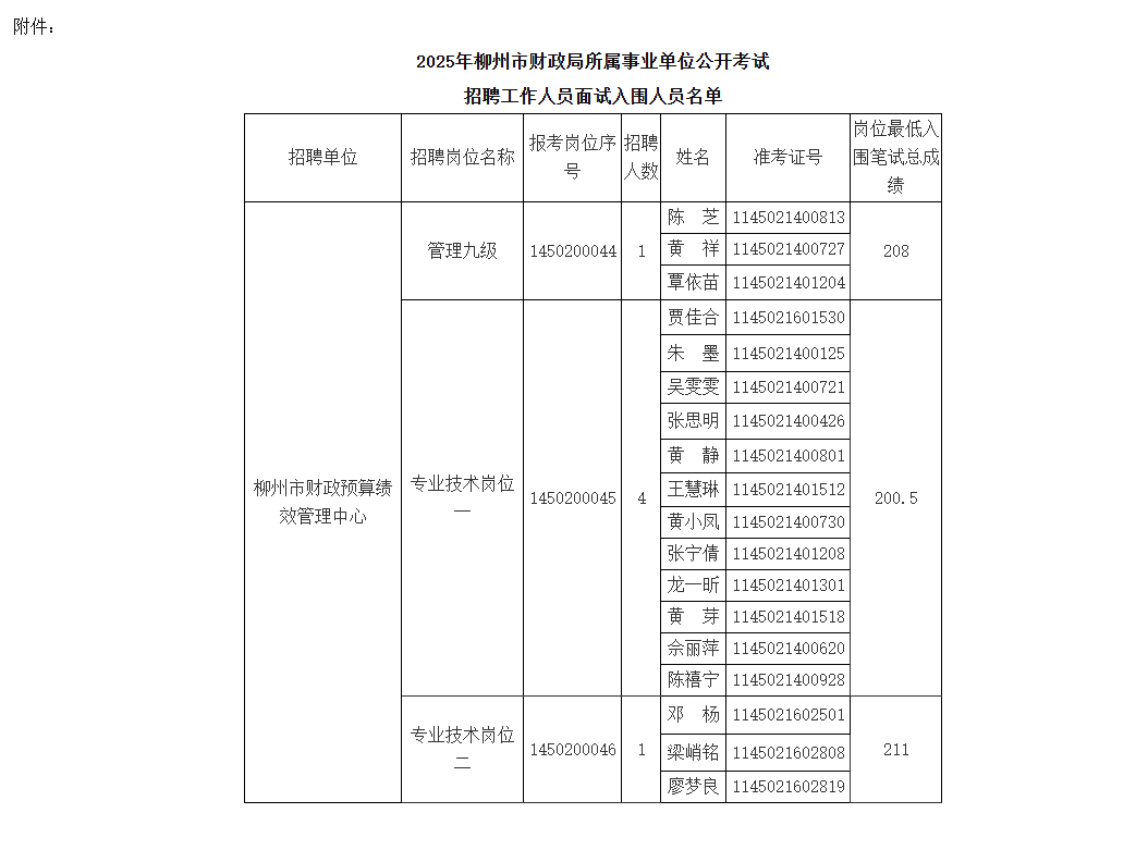 附件:《2025年柳州市財(cái)政局下屬事業(yè)單位公開考試招聘工作人員面試入圍人員名單》
