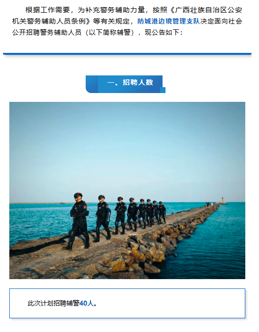 防城港邊境管理支隊公開招聘警務輔助人員40人