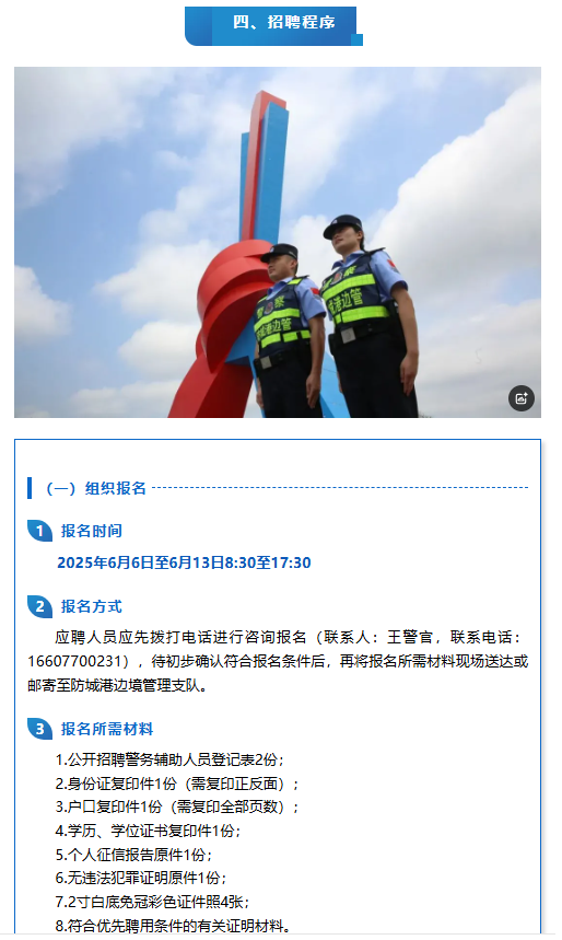 原文標題:防城港邊境管理支隊公開招聘警務輔助人員公告