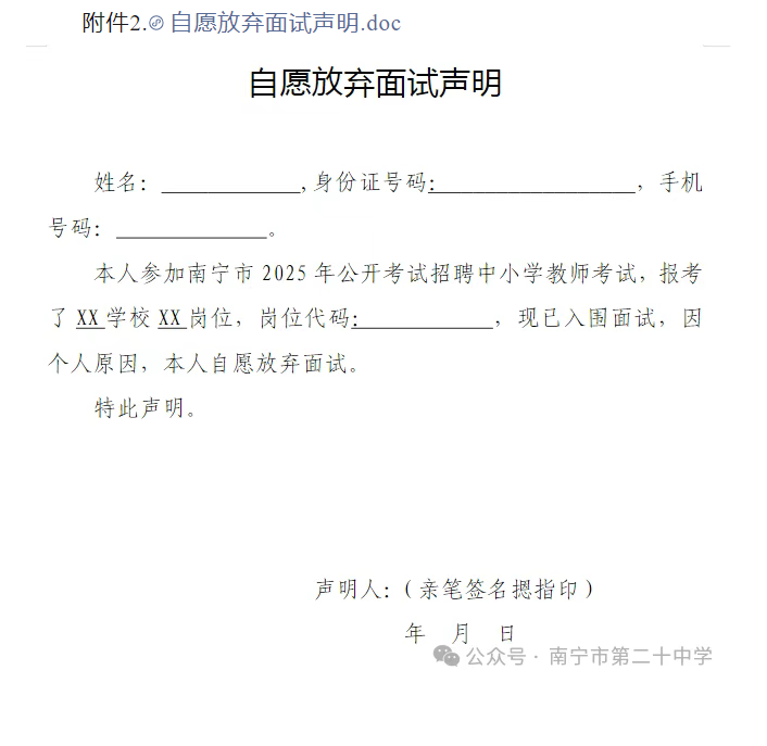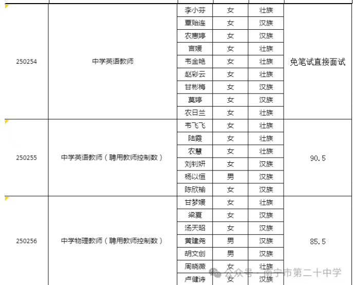 南寧市第二十中學(xué)2025年公開(kāi)考試招聘中小學(xué)教師面試入圍人選資格審查通知