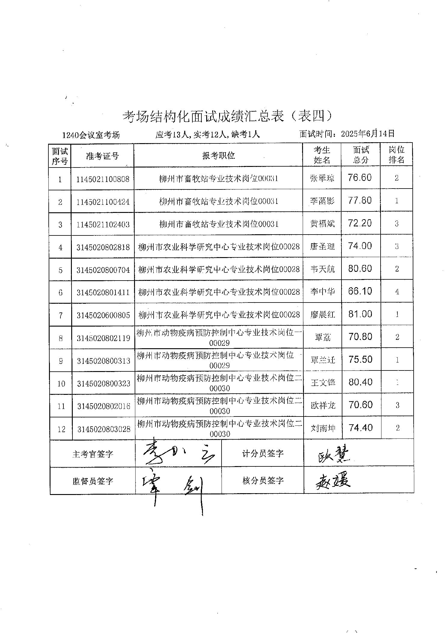 柳州市農(nóng)業(yè)農(nóng)村局2025年度上半年事業(yè)單位公開(kāi)招聘面試成績(jī)