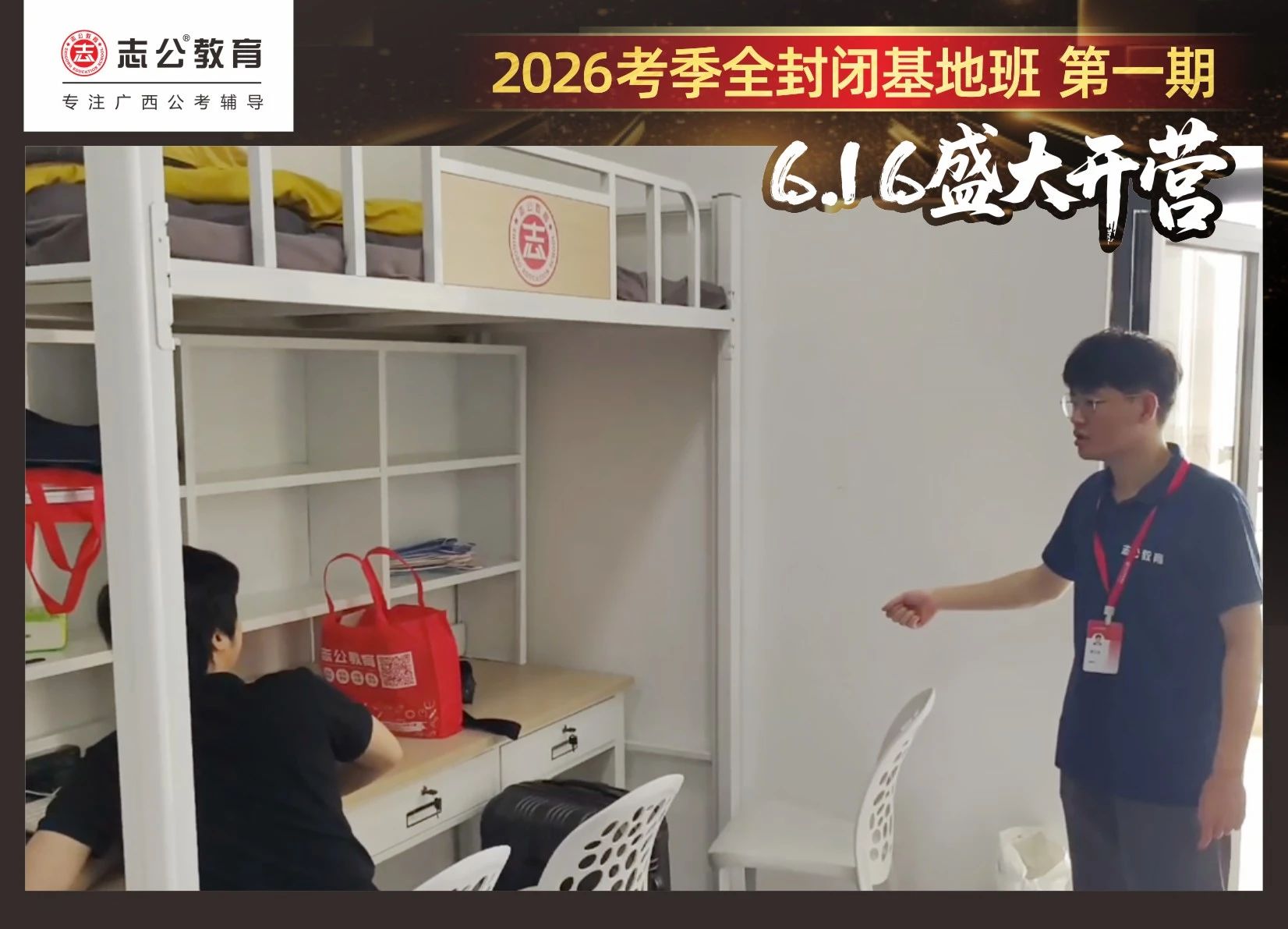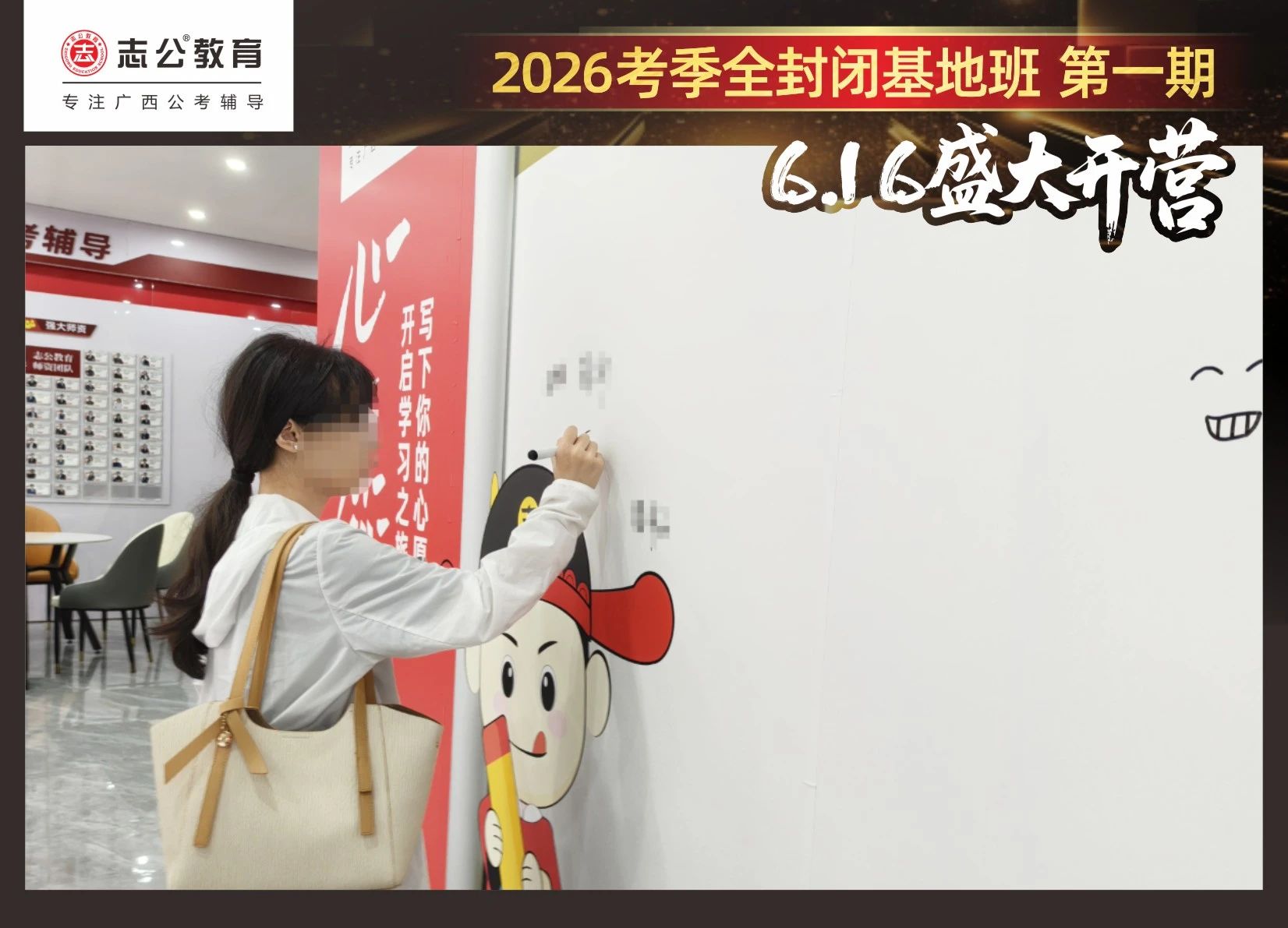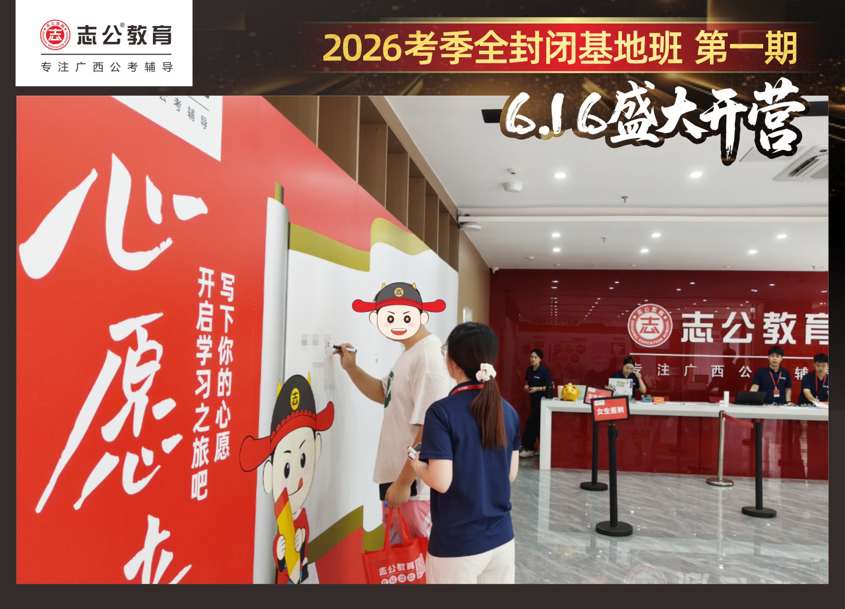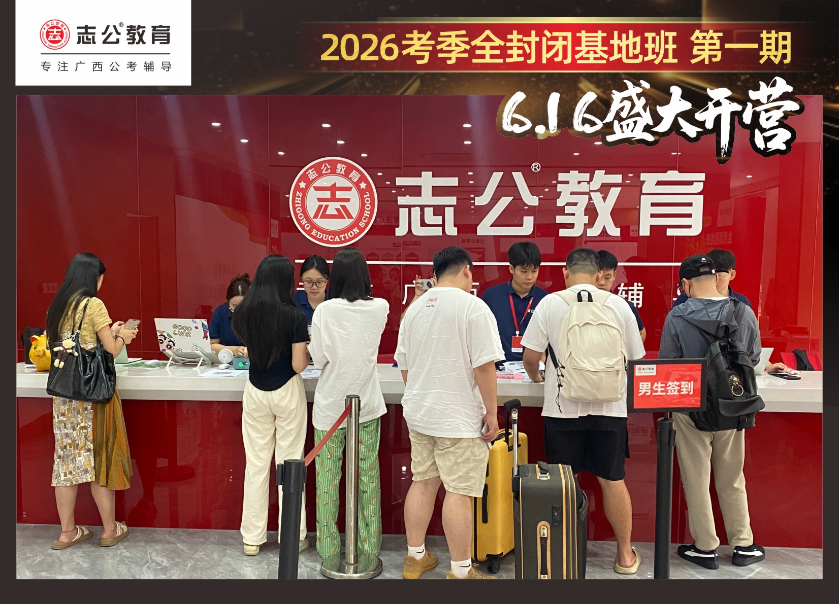 由于這段時(shí)間受臺(tái)風(fēng)影響,南寧迎來(lái)下雨天,但學(xué)員們滿懷先一步備考,快一步成功圓夢(mèng)的滿滿炙熱信心,早早就在志公教育(中關(guān)村)全封閉基地前臺(tái)等候,6月16日,志公教育26考季全封閉基地班第1期的學(xué)員們齊聚一堂,正式開(kāi)啟他們的公考備戰(zhàn)之旅。簽到環(huán)節(jié)作為基地班課程的第一站,不僅是對(duì)學(xué)員們的歡迎儀式,更是他們邁向夢(mèng)想的第一步。