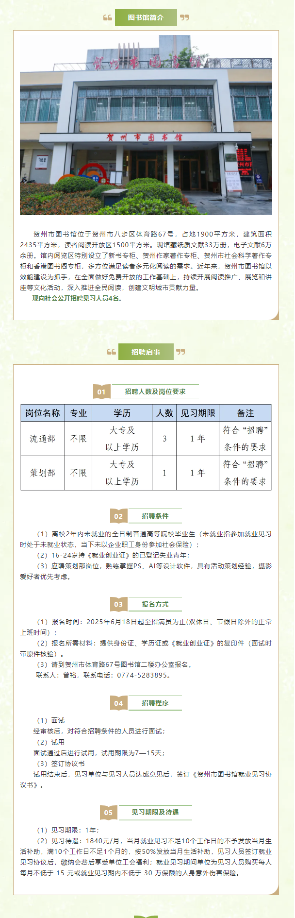 2025年賀州市圖書館招聘見習(xí)人員4人