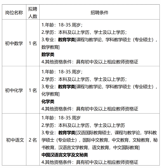 (六)18周歲以上、35周歲以下。有教學(xué)經(jīng)驗(yàn)豐富、碩士研究生或中級(jí)職稱以上的應(yīng)聘人員,年齡可適當(dāng)放寬到45周歲。