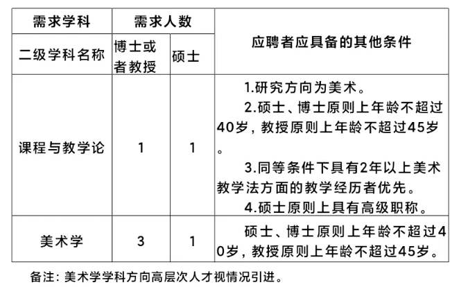 美術(shù)學(xué)院2025年計(jì)劃在美術(shù)學(xué)、課程與教學(xué)論(美術(shù))等專業(yè)方向招聘6位專任教師,其中計(jì)劃招聘博士或者教授4人,碩士2人。