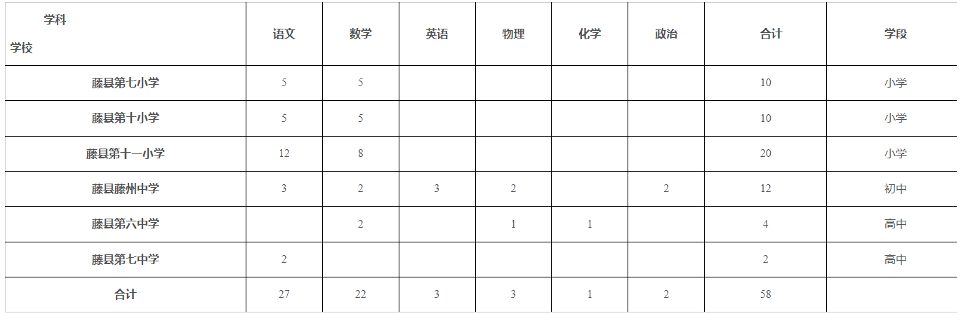 競(jìng)聘初中教師崗位必須是藤縣鄉(xiāng)村學(xué)校在編在崗的中小學(xué)教師(即不含縣城學(xué)校中小學(xué)教師),具有國(guó)民教育大學(xué)本科及以上學(xué)歷,并取得初級(jí)中學(xué)及以上教師資格,且勝任應(yīng)聘崗位工作。