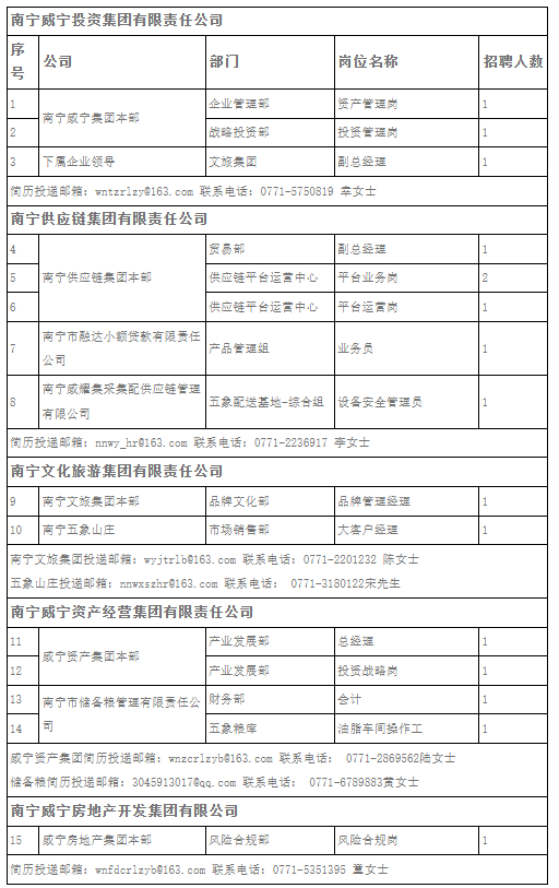 原文標題:南寧威寧集團2025年第三季度招聘啟事