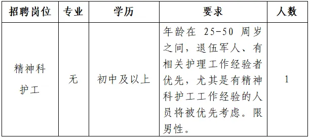 為了給我院精神科患者提供更優(yōu)質(zhì)、貼心的照護(hù)服務(wù),現(xiàn)面向社會(huì)公開(kāi)招聘精神科護(hù)工一名,期待有愛(ài)心、有責(zé)任心的你加入我們的團(tuán)隊(duì),共同為患者的健康保駕護(hù)航。具體事宜公告如下: