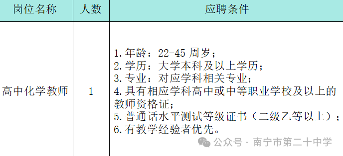 原文標(biāo)題:南寧市第二十中學(xué)教師招聘啟事