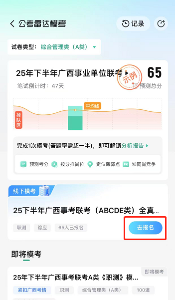 1??全zhen模擬高度還原:嚴(yán)格按照廣西事業(yè)單位聯(lián)考流程和時(shí)間進(jìn)行,試卷對(duì)標(biāo)zhen題,考場(chǎng)安排也高度還原,給你沉浸式考試體驗(yàn)。