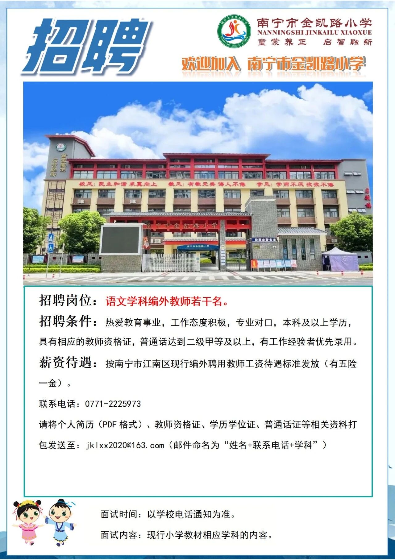 2025年南寧市金凱路小學招聘語文學科編外教師若干人