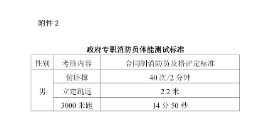 3、注意事項:所有應聘人員必須結(jié)合本人身體狀況,憑個人意愿參加體能考核,并當場簽訂《政府專職消防員招聘考核安全風險自愿承擔承諾書》(附件3);如本人身體狀況欠佳、不能參加體能考核的,應當放棄考核。不按規(guī)定時間、地點參加體能考核的,視為自動放棄應聘資格。
