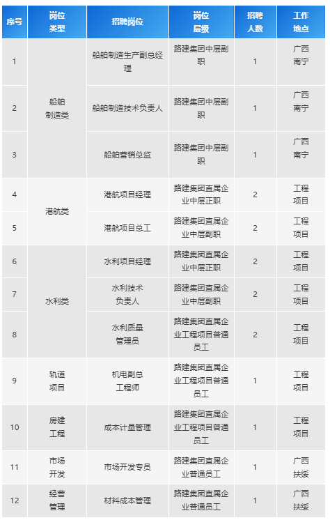根據(jù)廣西路建集團發(fā)展需要,現(xiàn)面向社會公開招聘關(guān)鍵崗位人才,誠邀有志之士與廣西路建集團共創(chuàng)美好未來。