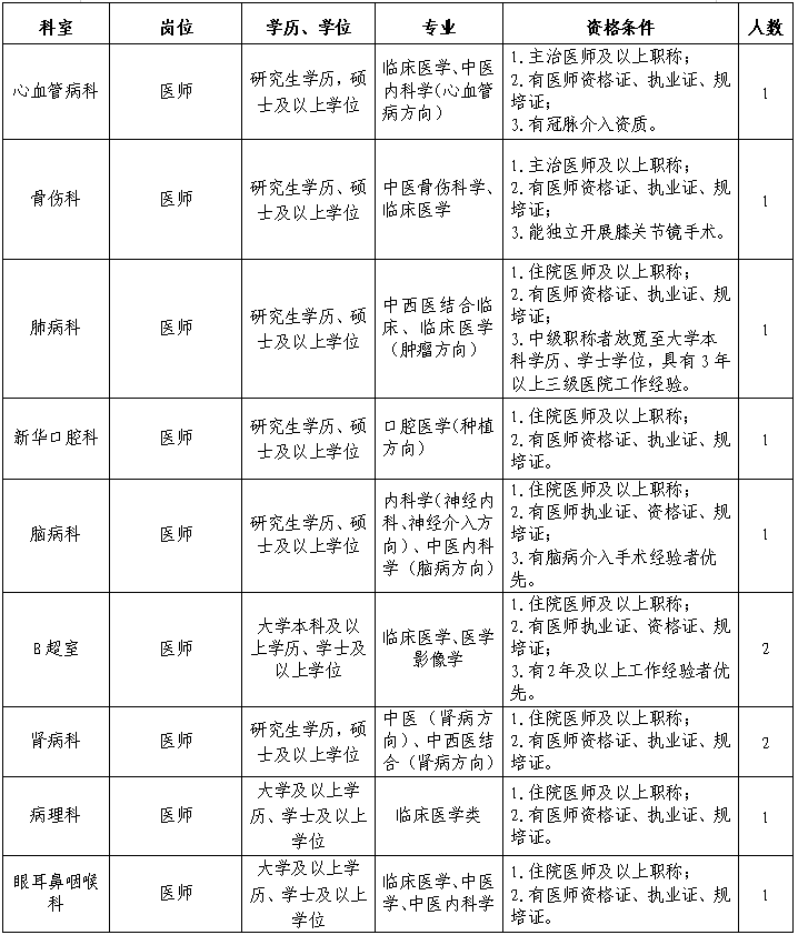 根據(jù)醫(yī)院高質(zhì)量發(fā)展需要,我院誠(chéng)聘衛(wèi)生醫(yī)療相關(guān)專業(yè)領(lǐng)域的人才,歡迎投簡(jiǎn)歷應(yīng)聘。