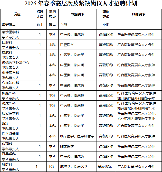 本著按需招聘,貫徹“公開、平等、競爭、擇優(yōu)”原則,現將2026年春季高層次及緊缺崗位人才招聘有關事項公告如下: