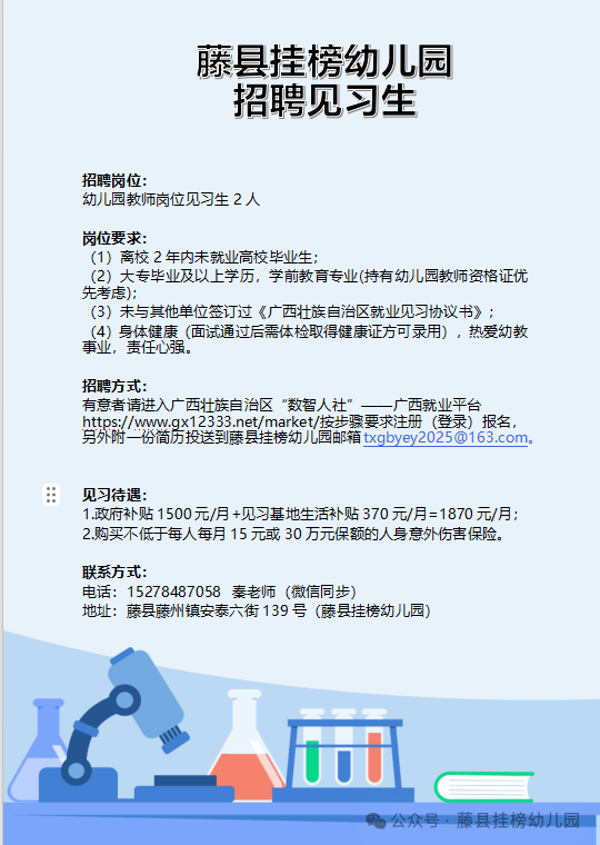 2026年藤縣掛榜幼兒園春學(xué)期招聘見習(xí)老師公告