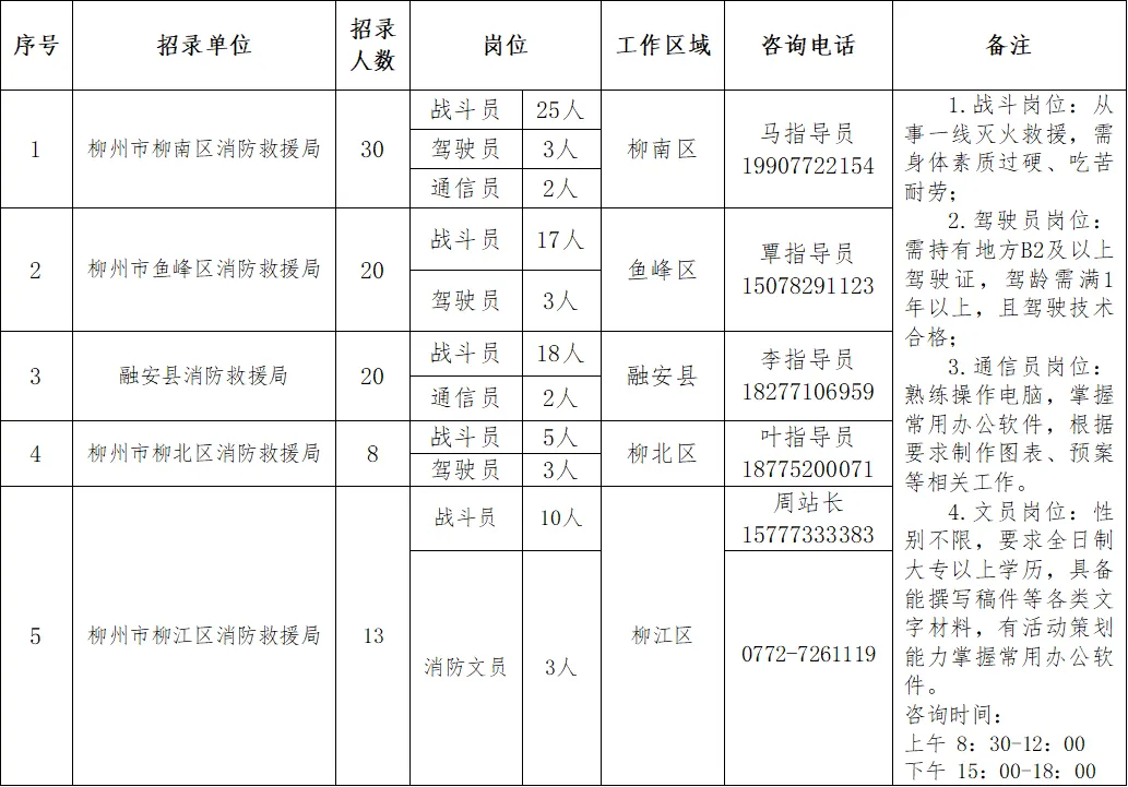 政府專職消防員91人。崗位要求:男性,身高165CM以上,雙眼裸視力4.8以上,需具備高中(中專)以上學(xué)歷,年齡為18-28周歲以下(有部隊(duì)服役經(jīng)歷或者全日制大專及以上學(xué)歷可放寬至30周歲),身體素質(zhì)過(guò)硬、吃苦耐勞、心理健康,無(wú)遺傳性、傳染性和慢性疾病,符合體檢標(biāo)準(zhǔn)。